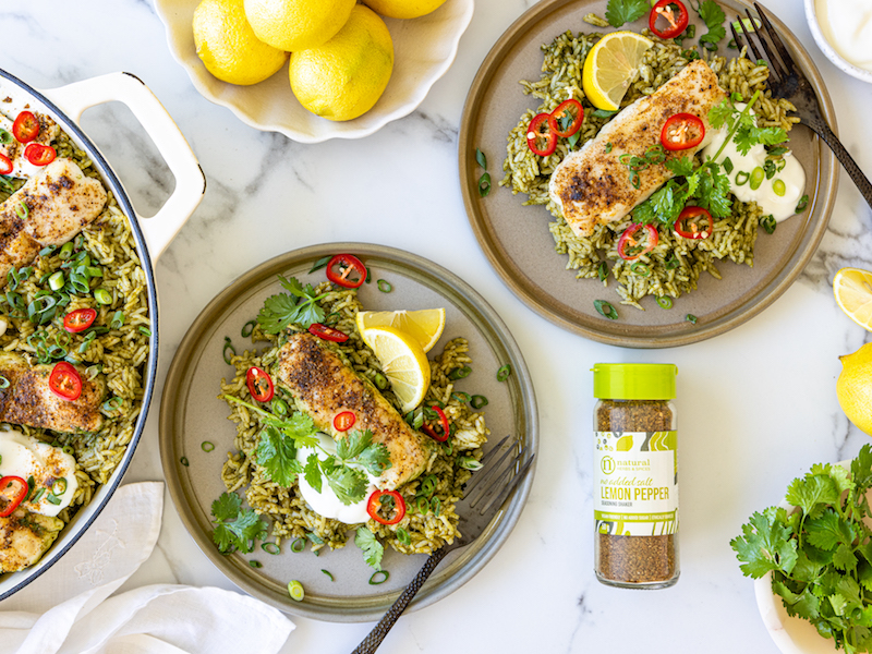 Drizzle with a little olive oil and season well with Natural Herbs & Spices No Added Salt Lemon Pepper Seasoning.